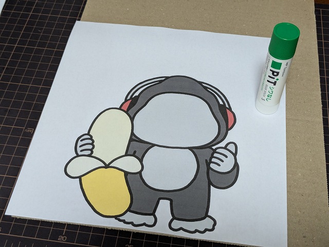 印刷したイラストの裏全面に隙間なくのりを塗って段ボールにつけます。